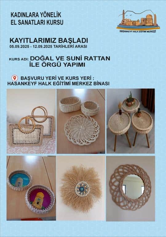 DOĞAL VE SUNİ RATTAN İLE ÖRGÜ YAPIMI KURSUNA KAYITLAR BAŞLAMIŞTIR.